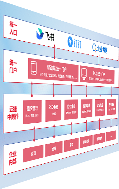 对协作平台提供支持服务,,,支持企业应用与协作平台对接,,,包含组织同步、、消息集成、、待办集成等。。。。支持目前主流的协作平台:钉钉、、、、企微和飞书。。。